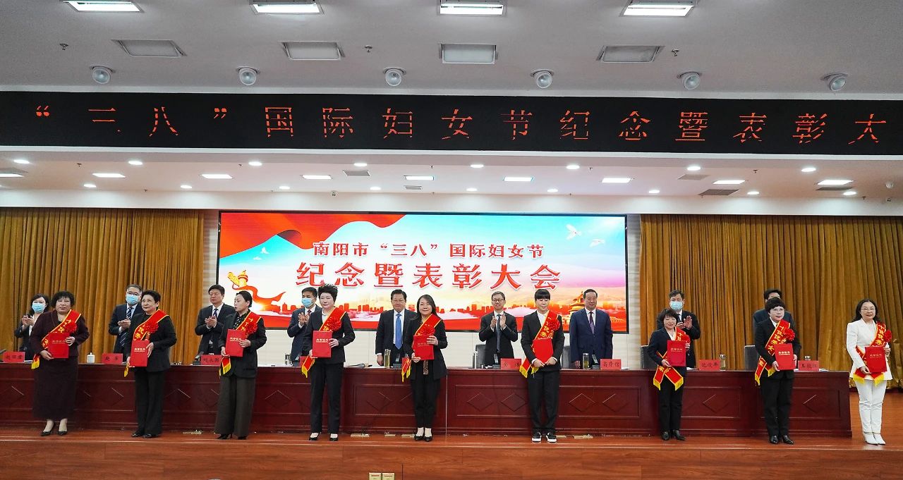 2023年3月7日,南陽市市委、市政府、市婦聯隆重舉行“三八節”表彰大會,郭靜麗董事長榮膺“南陽市十大優秀女企業家”榮譽稱號,這是所有河南天曼服飾家人的榮耀,是激勵河南天曼服飾踔厲前行的號角!