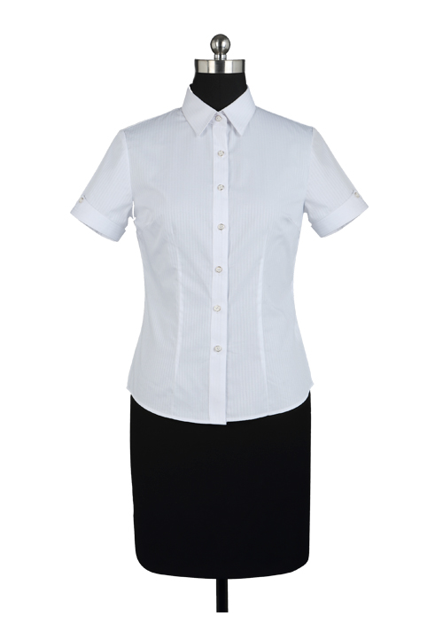 款式:女短袖v領(lǐng)襯衫